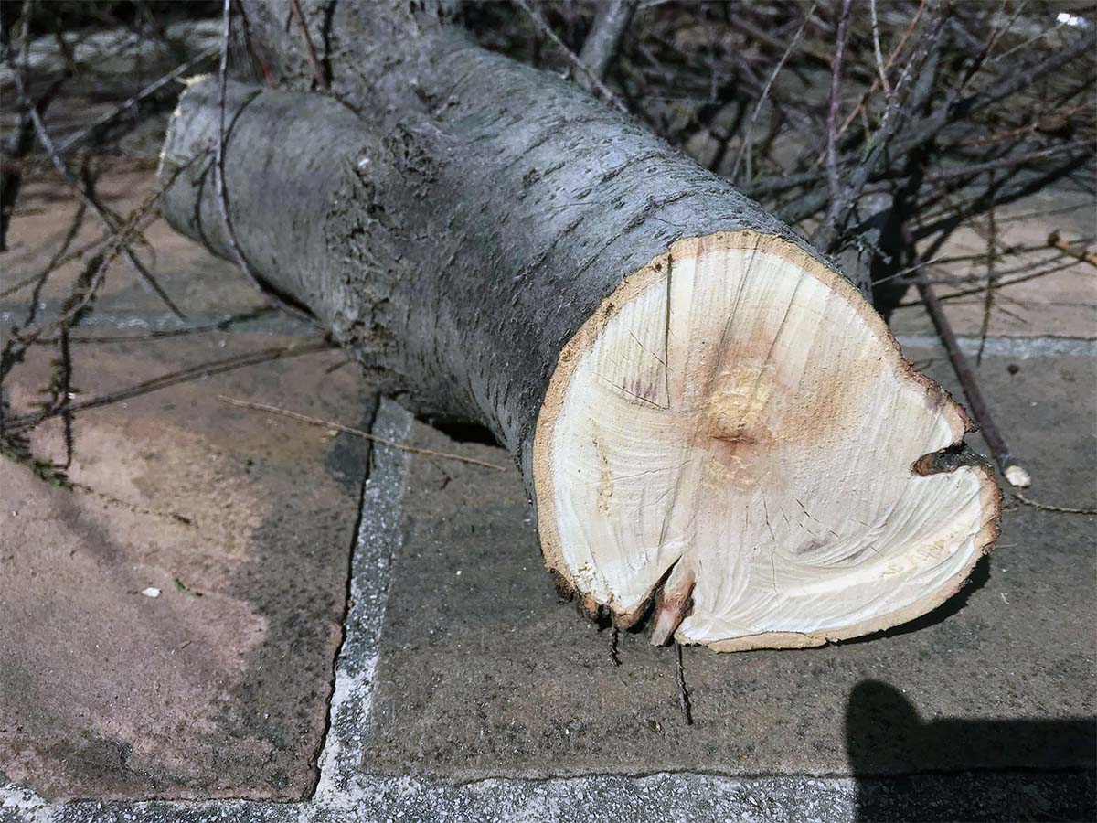 - che in caso di obbligo di tagli importanti, superiori agli 8 cm, la sezione va disinfettata, perché lo stesso taglio in caso contrario porterà marciume e ingresso di agenti patogeni, ma naturalmente nessun taglio è stato disinfettato.