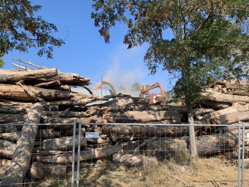 Il primo grande colpo viene sferrato il 31 maggio 2021, con l’apertura del varco, di 600 m di lunghezza per circa 10 di larghezza, per il passaggio della strada Pendolo, con di fianco Via Pantini libera e disponibile. Qualche mese dopo è arrivato il fuoco. Dopo tre anni l’esbosco, con cingolati e benne, e adesso cippatrici e camion a portarsi via, per fare cosa non si sa ma si può immaginare, un patrimonio di legname in cui è stoccato almeno un secolo di sequestro di CO2 fatto dagli alberi attraverso la fotosintesi.
