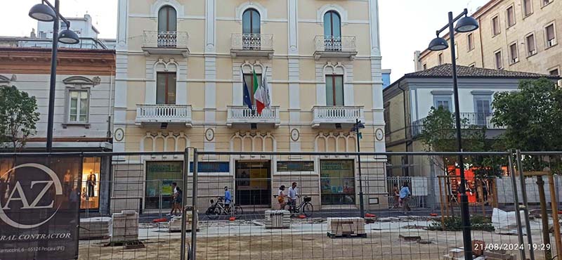 E a suggellare tutto ciò, davanti al palazzetto della Fondazione PescarAbruzzo, gli alberi non sono stati inseriti, probabilmente perché valutati un “impedimento” a “quinte sceniche” e “visioni prospettiche”, codici manieristici datati che molto poco hanno a che fare con la nuova progettazione per la mitigazione dei cambiamenti climatici.