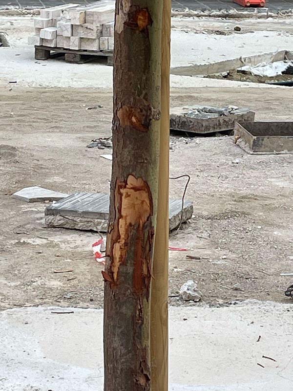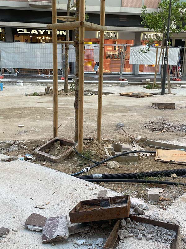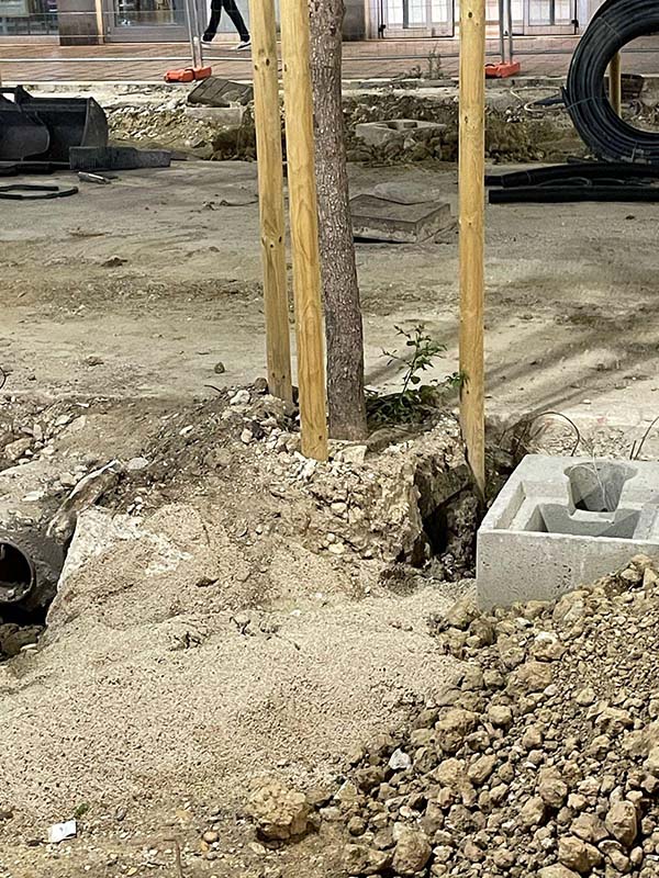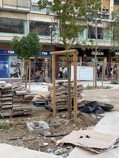 - I sottoservizi sono stati addirittura inseriti nelle aiuole, quando le regole dicono che l’areale non dovrebbe avere interferenze per un minimo raggio di circa 2 metri dal tronco.