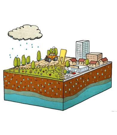 Cosa prevede infatti il modello della Città Spugna? Che l’acqua piovana sia assorbita il più possibile nella terra, facendo giardini della pioggia, trincee infiltranti, decementificando aree ora impermeabilizzate, il tutto a fondamenta dello sviluppo delle infrastrutture verdi.