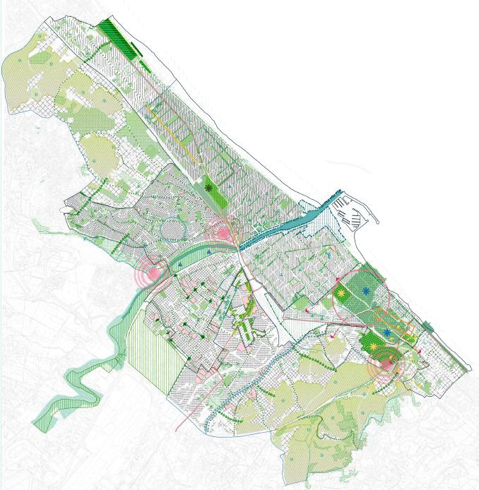 Nella planimetria diffusa, chiamata Visione Strategica, sinteticamente si ha la descrizione di come dovrebbe trasformarsi la città, con le sue connessioni verdi, viali alberati veri, decementificazioni.